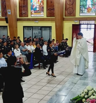 Policías de Pastaza celebraron misa en la Catedral de Puyo.