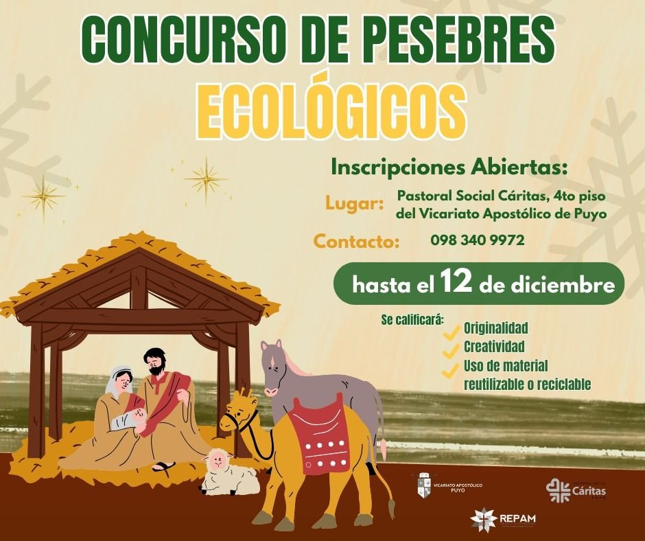 Participa en el Concurso de Pesebres Ecológicos 2025 de REPAM Puyo y muestra cómo el arte también cuida al planeta.