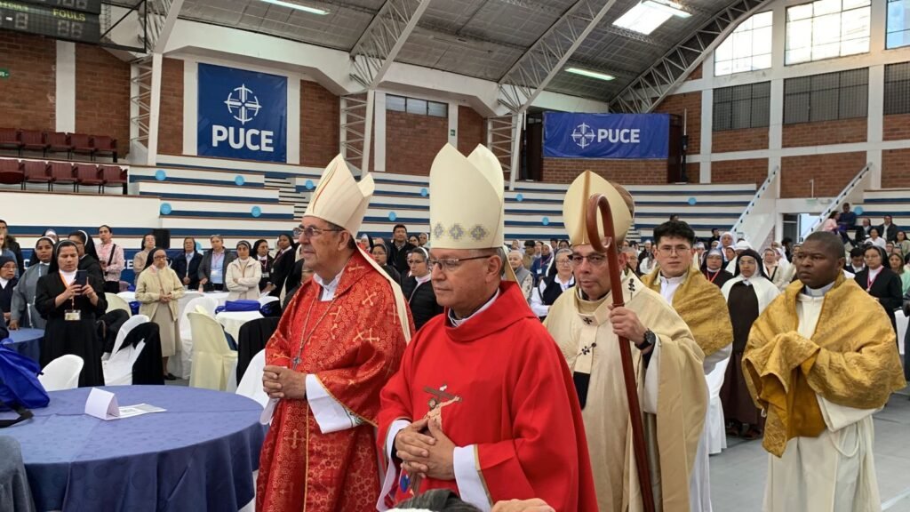 Primer día con misa solemne presidida por Mons. Alfredo Arzobispo de Quito acompañado por los obispos Mons. Rafael Cob, Obispo de Puyo y Mons. Walter, Obispo de Loja con la participación de 400 consagrados.