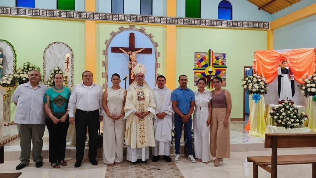 Se vivió la Fiesta de San Vicente en la comunidad de la Moravia cantón Mera con la santa Eucaristía presidida por el obispo de Puyo Mons Rafael Cob acompañado de los priostes entrantes y salientes.