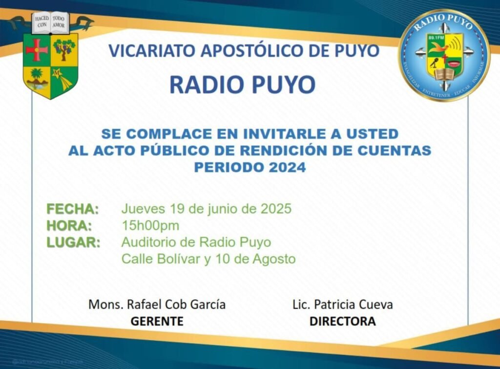 Invitación al Acto Público de Rendición de Cuentas del año 2024 de Radio Puyo.
