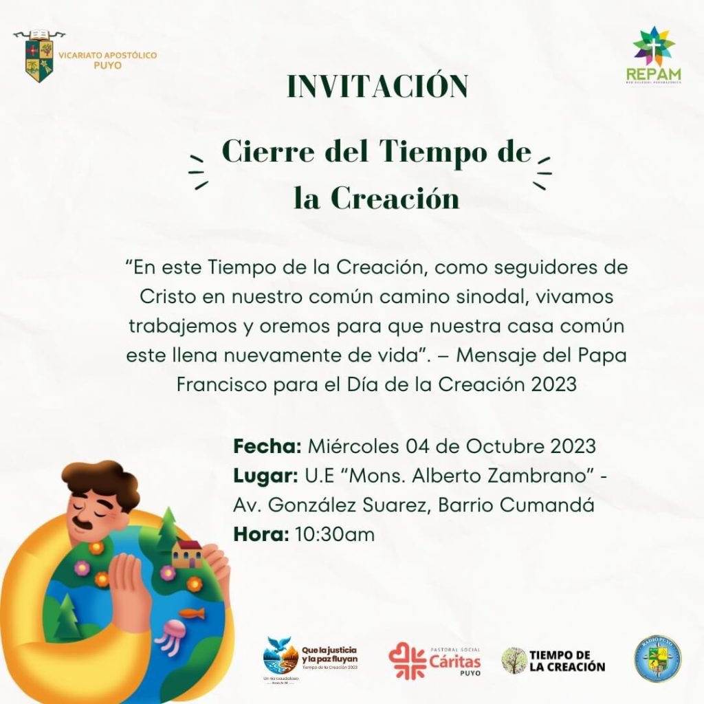 INVITACIÓN AL CIERRE DEL TIEMPO DE LA CREACIÓN EN PUYO.