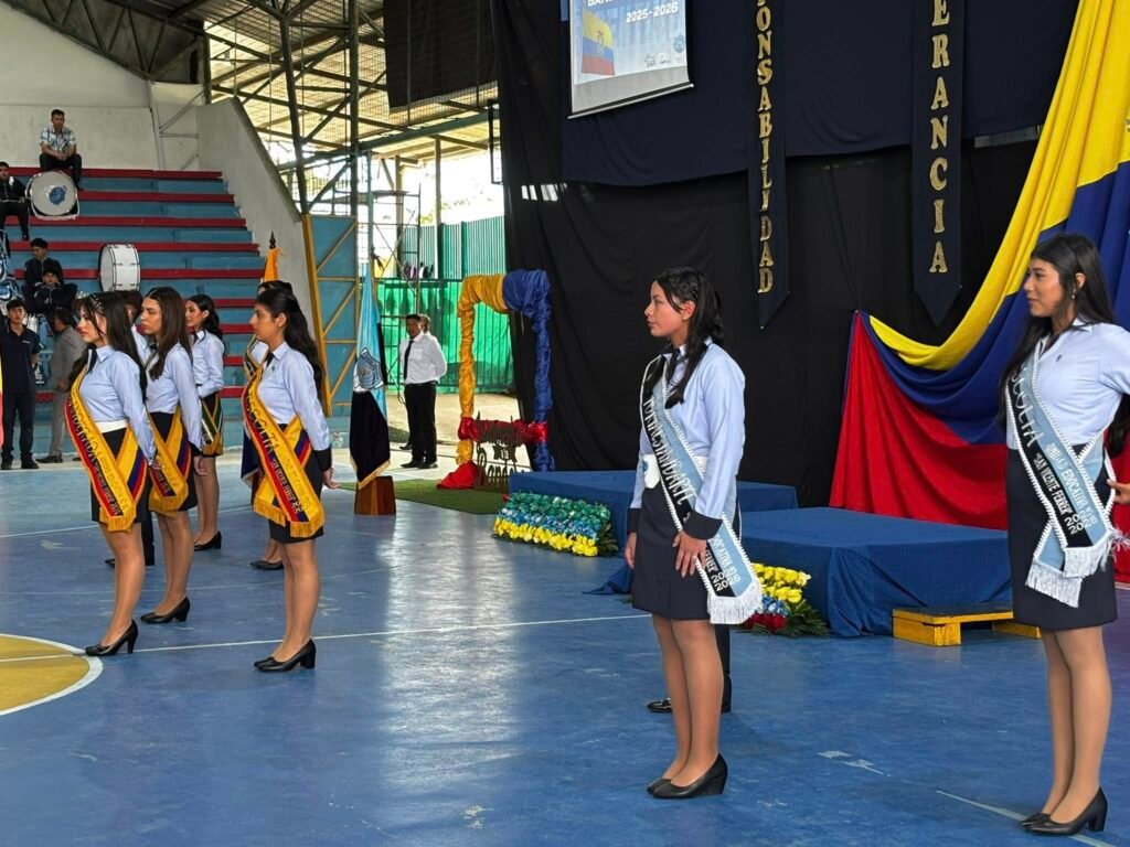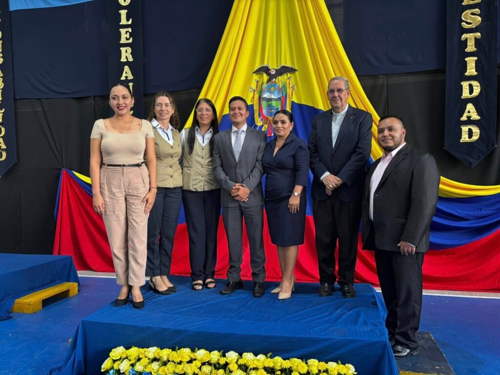 Mons Rafael Cob Obispo del Vicariato Apostólico PUYO participó en la ceremonia de proclamación de abanderados, portaestandarte, escoltas y juramento a la Bandera de la Unidad Educativa San Vicente Ferrer.