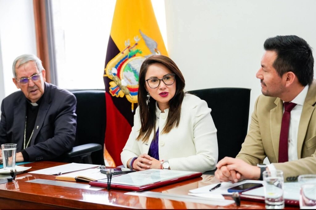 Los vicariatos entregaron una placa de reconocimiento a la ministra por su compromiso con los pueblos y nacionalidades en zonas fronterizas.